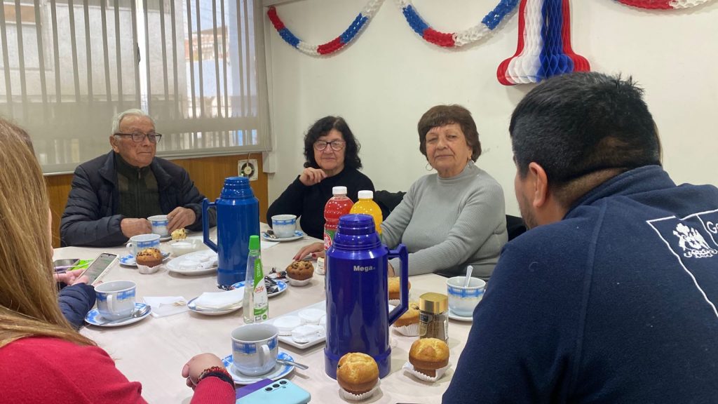 El delegado presidencial provincial Daniel Muñoz Pereira, junto a la jefa de sucursal del IPS San Felipe, Isabel Salas, conversaron con personas mayores sobre la pensión garantizada universal, que aumenta debido a la reforma de pensiones.
